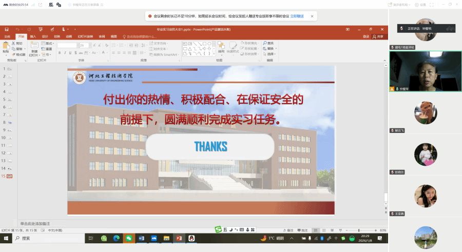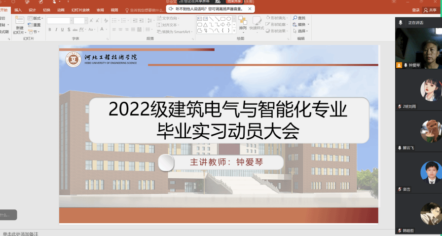 为确保2026届毕业生实习工作顺利开展,2026年1月8日晚8点,m88APP官网建筑电气与智能化专业通过腾讯会议(会议号:928100178)组织召开了2026届毕业生实习动员大会。会议由钟爱琴主任主持,建筑电气与智能化专业全体指导教师及大四学生参加。