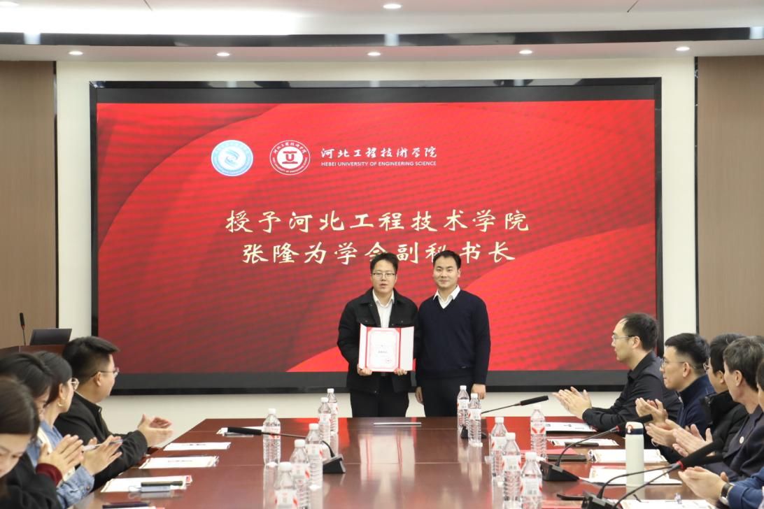 会上举行河北省智能建造学会授聘仪式,河北工程技术学院被授予学会理事单位,张隆老师受聘为副秘书长,杜慧慧老师受聘为理事,标志着学院深度融入区域智能建造行业生态。
