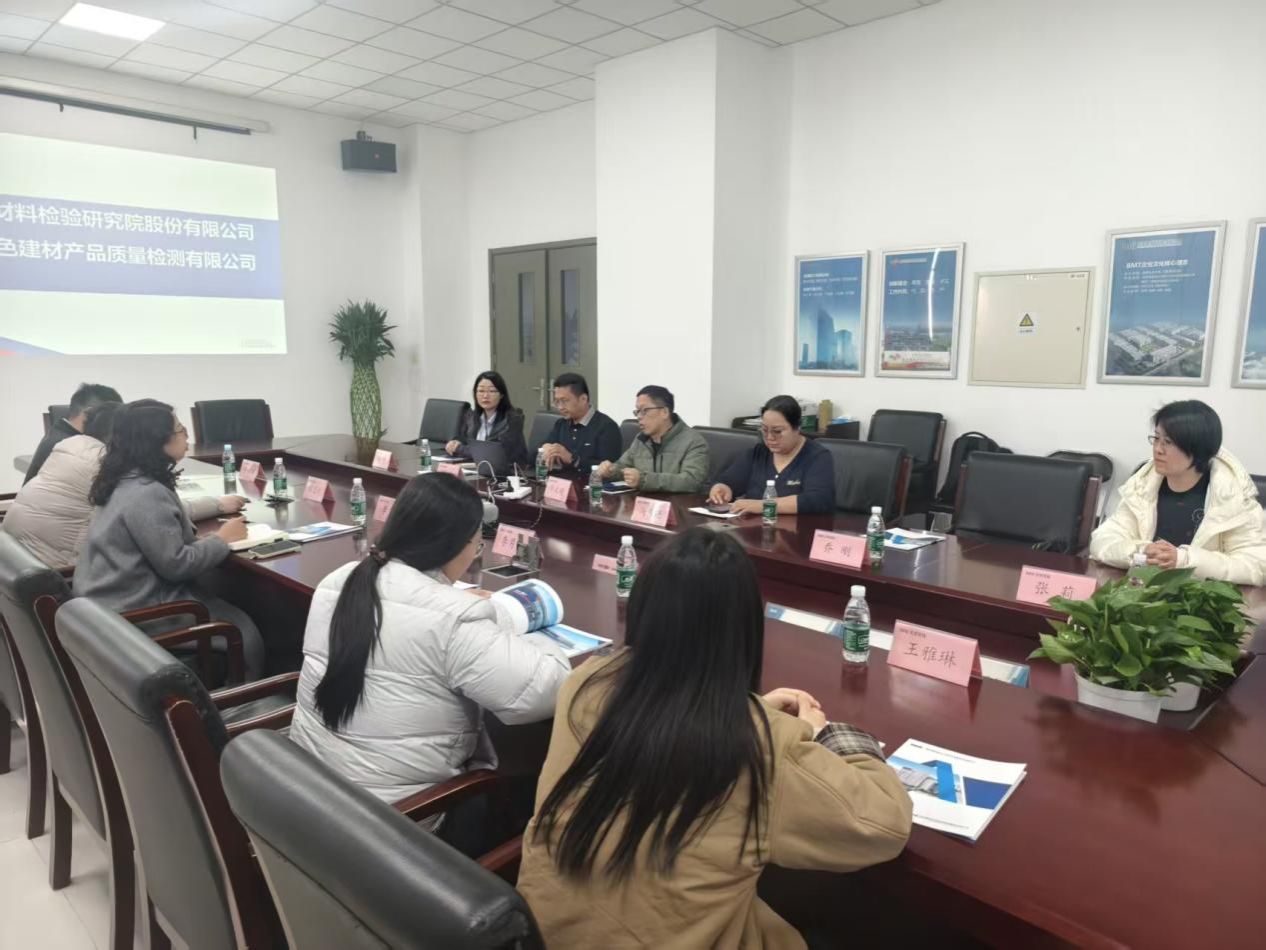 参观结束后,双方在会议室举行交流会议。河北绿检总经理张伟详细介绍了北京检验及河北绿检的发展历程、业务范围、技术优势和行业影响力,公司秉持“科学、公正、准确、高效”的理念,在建材检测领域具有深厚积淀。随后,李晶副院长介绍了学院人才培养目标、课程体系设置及科研发展方向,强调了产教融合对提升人才培养质量、推动科研成果转化的重要意义,并表达了与企业深化合作、携手培养行业实用型人才、共促行业发展的殷切期望。