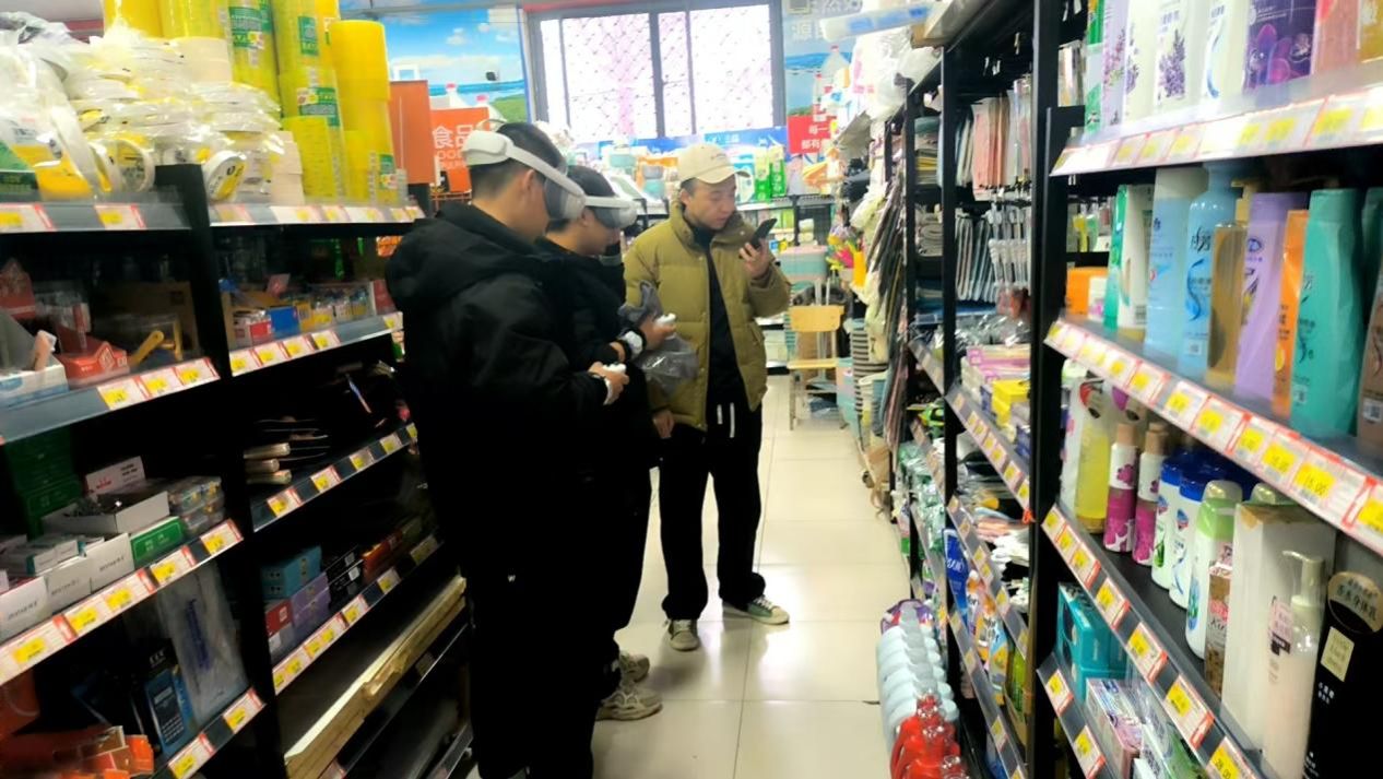 走进熟悉的超市,货架上的日用品依旧烟火气满满,却多了几分科技感十足的新鲜画面 —— 几位戴着 VR 头显的体验者,正站在日化区旁沉浸式探索,传统商超与前沿科技的碰撞,成了最吸睛的风景。