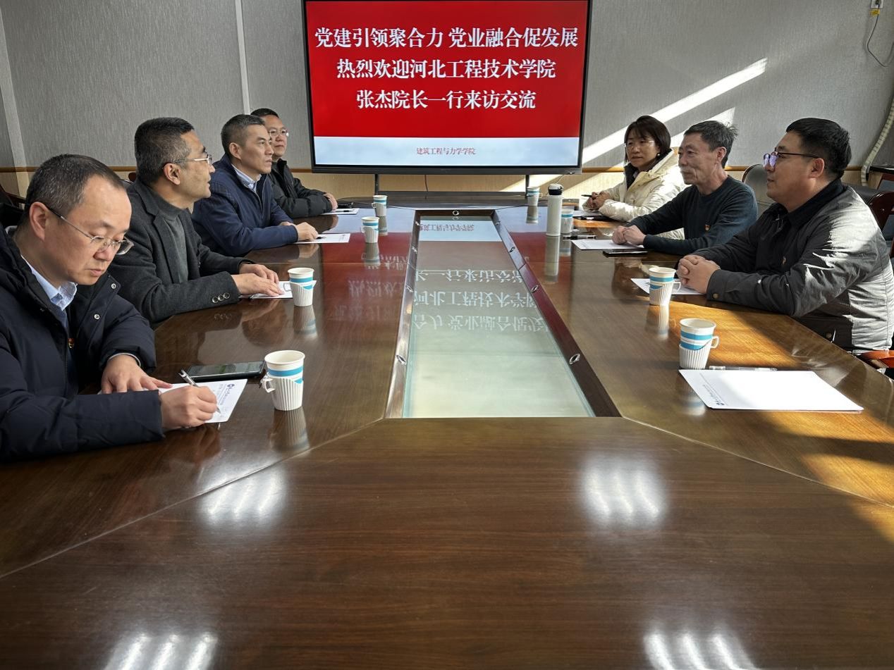 张杰院长介绍了我院的发展历程、专业设置、办学特色及当前在高质量发展、申硕工作推进过程中的需求与规划,对燕山大学建筑工程与力学学院长期以来在党建、学科建设等方面给予我院的悉心指导和大力支持表示衷心感谢。他表示,此次专程赴燕山大学开展党建帮扶交流,旨在深入学习借鉴该院党建与业务深度融合、学科专业建设、教学管理等方面的宝贵经验,以党建帮扶共建为重要抓手,推动双方合作走深走实,为我院高质量发展和申硕工作注入强劲动力。