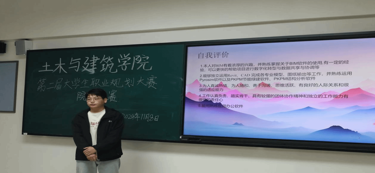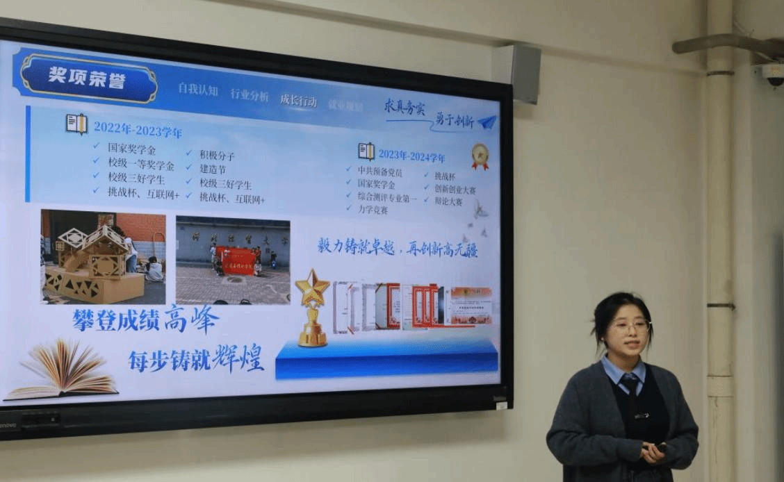 本次比赛分为成长赛道和就业赛道,共吸引了来自不同年级和专业的300余名同学积极参与。学院比赛分为班级赛,成长赛道、就业赛道初赛,学院决赛三个阶段进行,每个阶段都对参赛者提出了不同的要求和挑战。班级赛阶段,各班同学通过PPT展示,陈述了对自我认知和职业世界的理解;初赛阶段,通过现场PPT展示和答辩,同学们进一步阐述了他们的职业规划,并回答了评委的提问;决赛阶段,选手们更是以精彩的演讲和深入的分析,赢得了评委和观众的掌声。